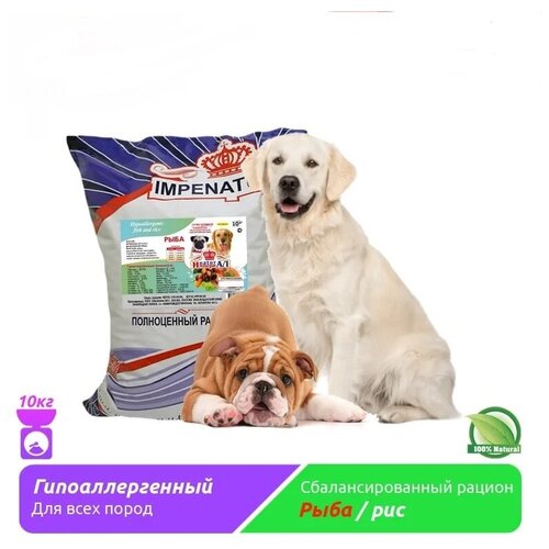IMPENATURIAL/ империал Сухой корм супер премиум/Гипоаллергенный рыба / рис для собак всех пород 10кг