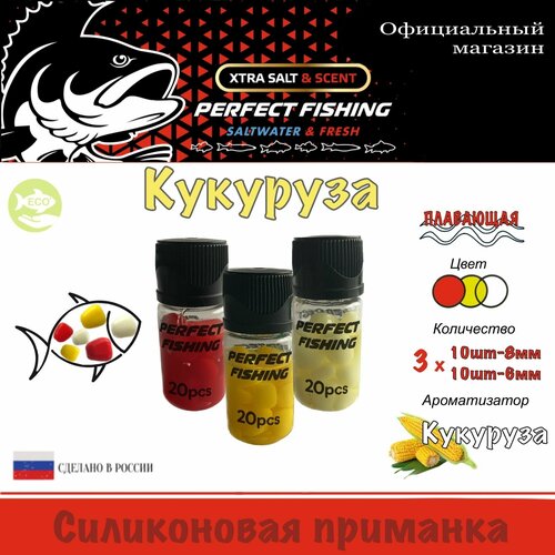 Силиконовая приманка кукуруза, желтый, красный, белый, кукуруза, 3х20шт