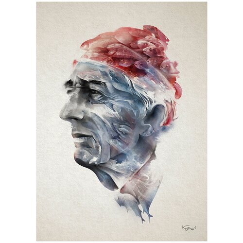 Интерьерный постер на стену картина для интерьера в подарок плакат "Жак-Ив Кусто (Jacques-Yves Cousteau)" размера 40х50 см 400*500 мм