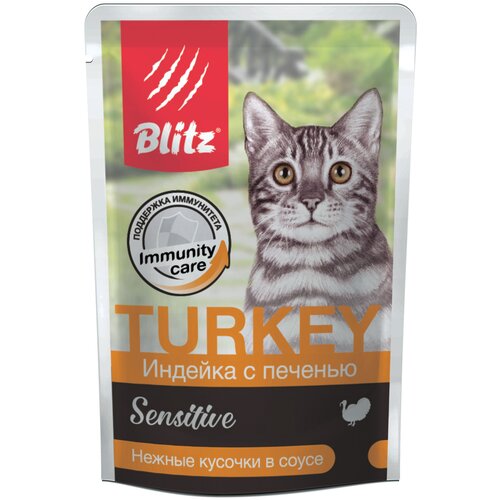 Корм влажный BLITZ (PET) Blitz для кошек Индейка с Печенью в соусе, 24шт х85 г