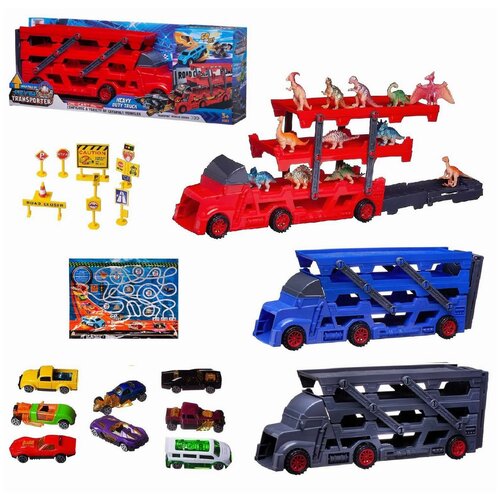 Машинка Автовоз-катапульта, грузовик, 3в1/ в наборе с 6 машинками