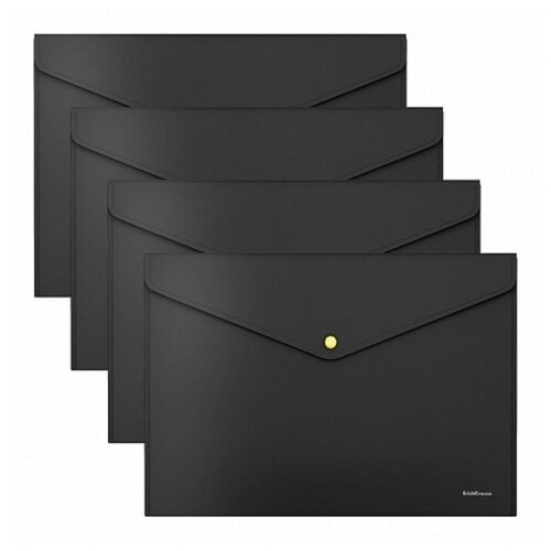Папка-конверт с неоновой кнопкой А4, Erich Krause Matt Accent, чёрная(12 шт.)