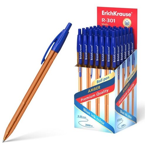 Ручка шариковая автоматическая ErichKrause R-301 Amber Matic, узел 0.7 мм, чернила синие, длина линии письма 2000 метров