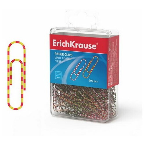 Скрепки канцелярские 28 мм, цветные, 200 штук Erich Krause "Зебра", с виниловым покрытием, пластиковый бокс(3 шт.)