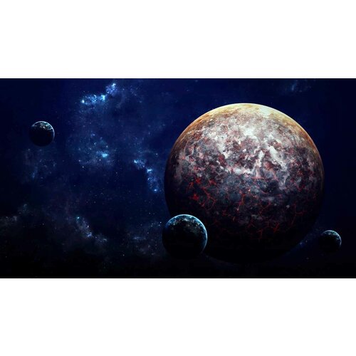 Постер на экокоже 60x110 LinxOne "Planets sci fi lava" интерьер для дома / декор на стену / дизайн