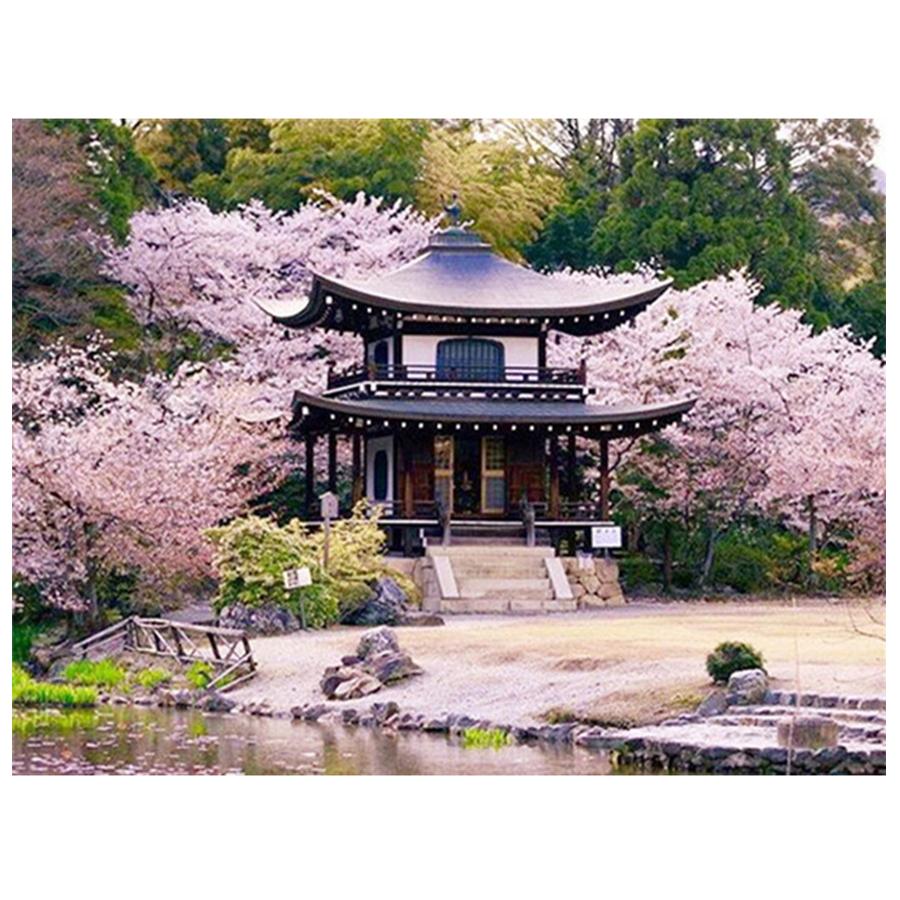 5d Diy Алмазная живопись Сакура Дерево Пейзаж Алмазная живопись Крест стежка Мозаика Вышивка Алмазная круглая площадь