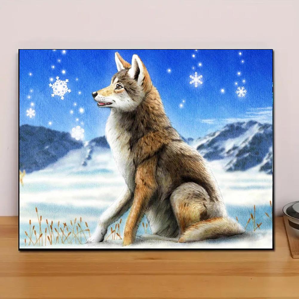 DIY Бриллиантовая живопись волчат на снегу Алмаз Вышивка Мозаика Картина стразы Животные Вышивка крестиком Декор стены