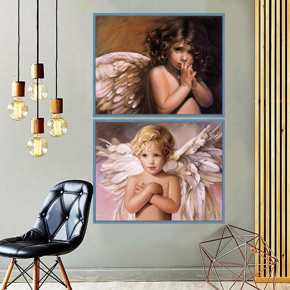 5D DIY Алмазная живопись Два милых маленьких ангела Полные круглые бриллиантовые мальчики Алмазные наборы для вышивки Мозаичное искусство