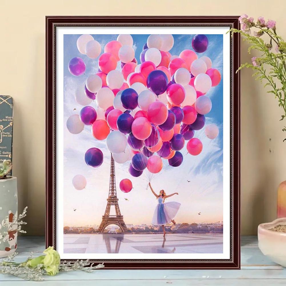 5D DIY Бриллиантовая живопись Девушка, которая поставила воздушные шары перед Эйфелевой башней Алмазная вышивка Полная алмазная мозаика