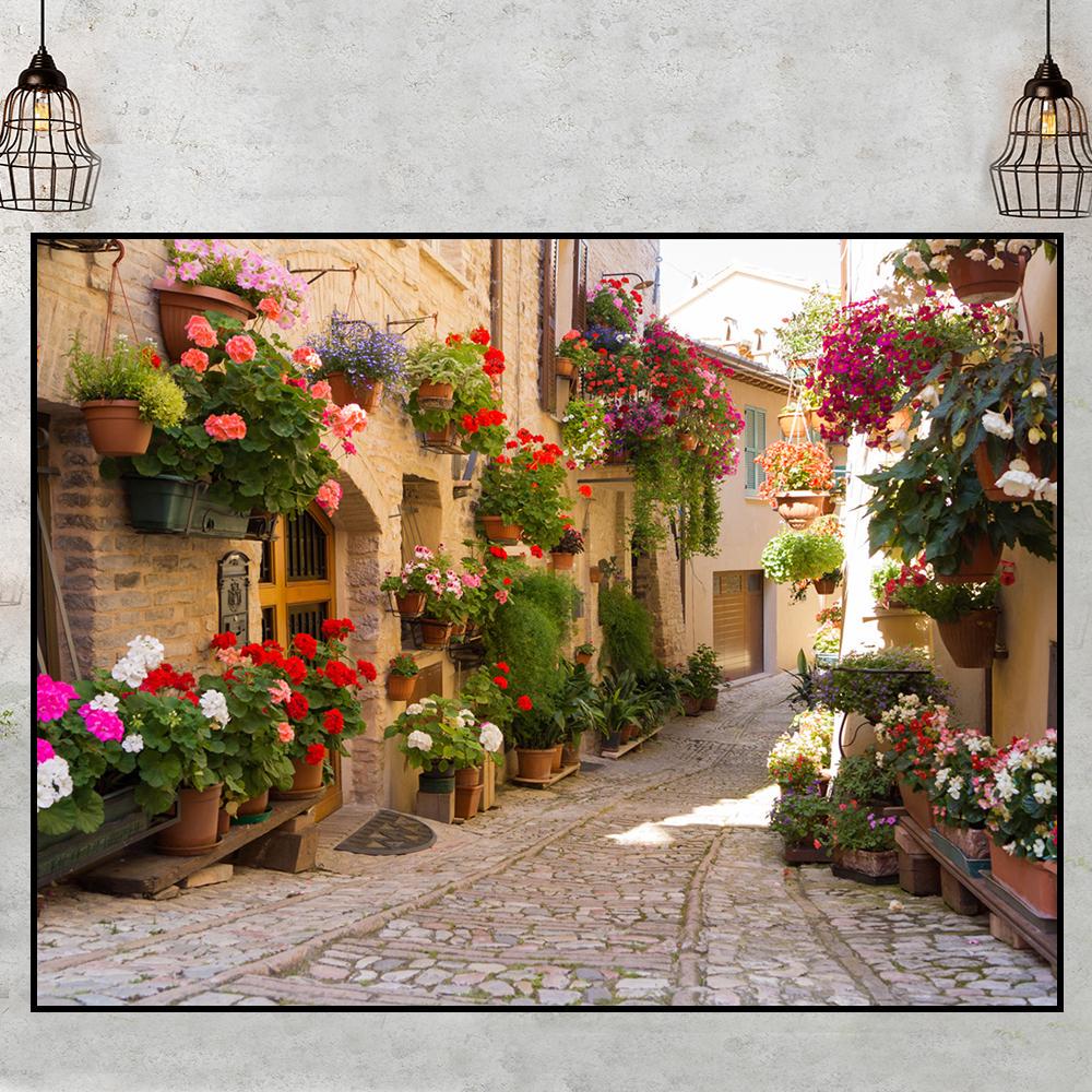 DIY Бриллиантовая живопись Уличные фонари и цветы Полный круглый бриллиант Вышивка Крестиком Домашние наборы декора
