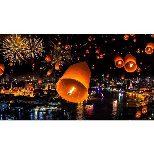 Постер на экокоже 50x70 LinxOne "Thailand фонарики бухта" интерьер для дома / декор на стену / дизайн