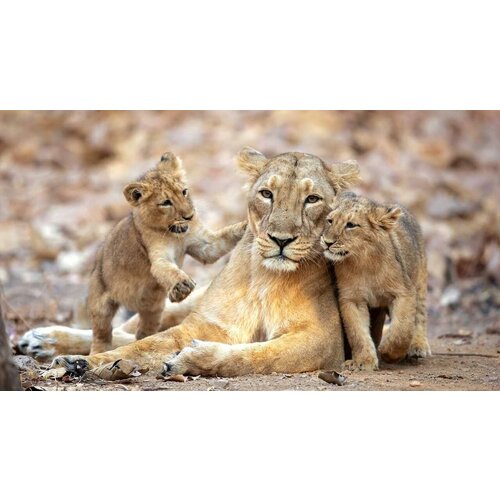Постер на экокоже 40x60 LinxOne "Львята львица lioness lion" интерьер для дома / декор на стену / дизайн