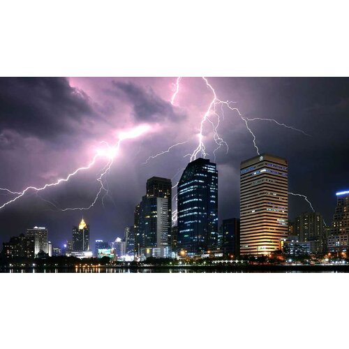 Картина на холсте 60x60 LinxOne "Bangkok Thailand молния ночь" интерьер для дома / декор на стену / дизайн