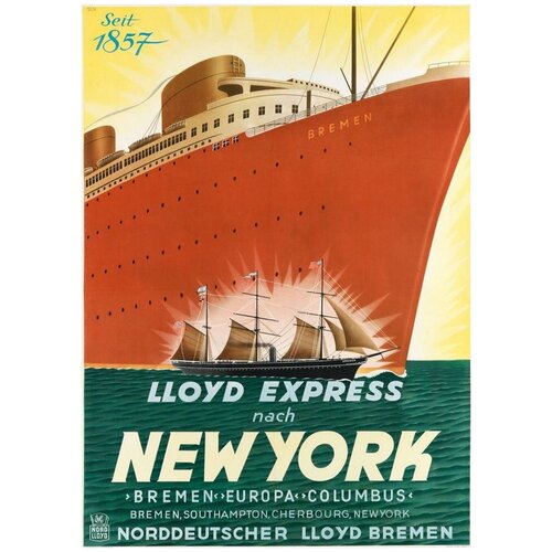 Постер / Плакат / Картина Корабли - Корабль Bremen, Lloyd express nach New York 50х70 см в подарочном тубусе