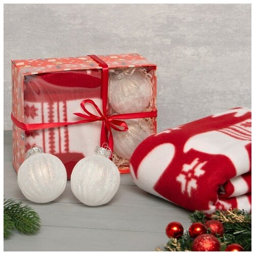 Подарочный набор LoveLife: плед 150*130см "Скандинавия" с новогодними игрушками