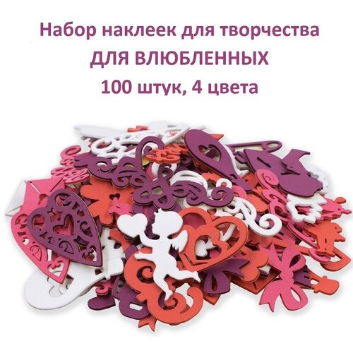 Набор наклеек для творчества 100 шт (сердца, ангелочки, бантики и тд), Санта Лючия