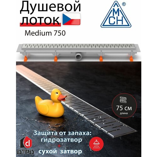 Душевой лоток MEDIUM 750 мм с боковым (горизонтальным) сливом D-50 мм MCH Chudej. Дренажный трап для душа с комбинированным затвором.