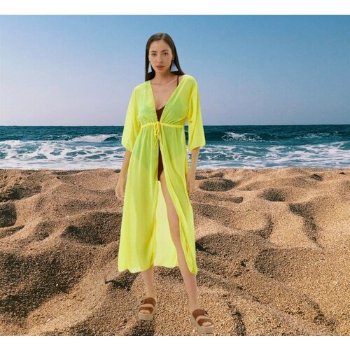Туника пляжная шифоновая накидка женская парео цвет желтый размер L