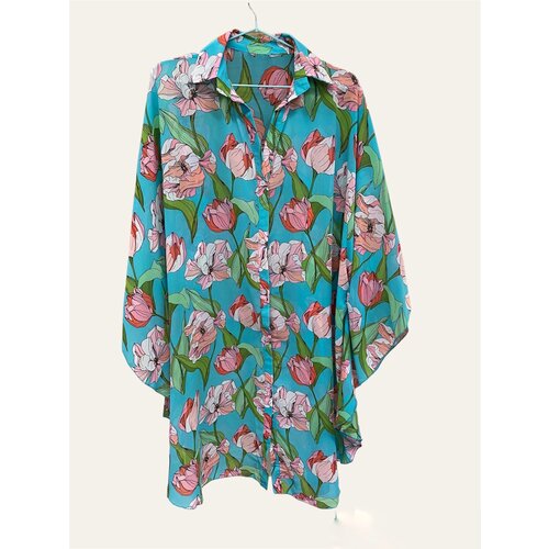 Туника пляжная накидка женская парео цвет бирюза размер 2ХL