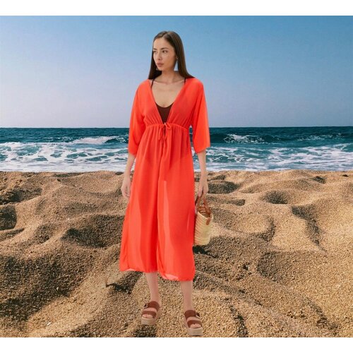 Туника пляжная шифоновая накидка женская парео цвет красный размер L