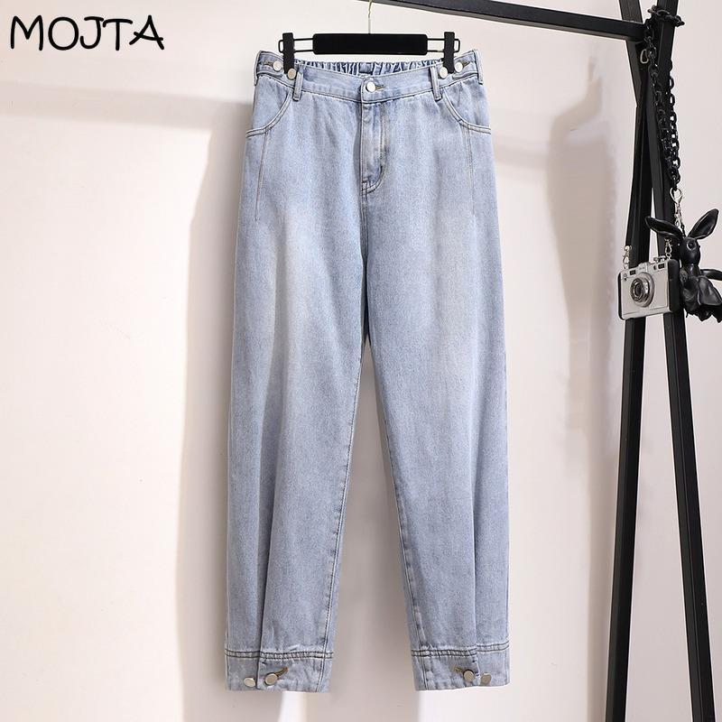 Женское Весна Лето Женщины Повседневные Свободные Повседневные Джинсовые укороченные брюки Прямые ноги Широкие брюки Плюс Размер