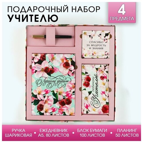 Подарочный набор «Лучшему учителю»: ежедневник А5, 80 листов, планинг, ручка, блок бумаг