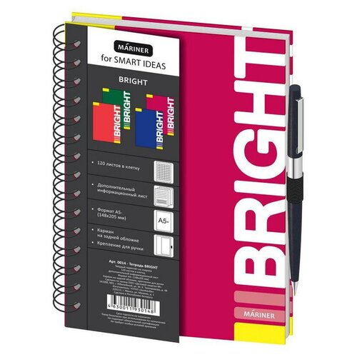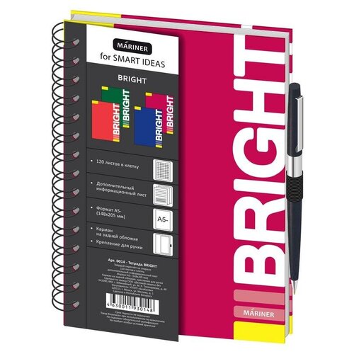 Бизнес-тетрадь Mariner Bright А5 120 листов бордовая в клетку на спирали (148х205 мм)