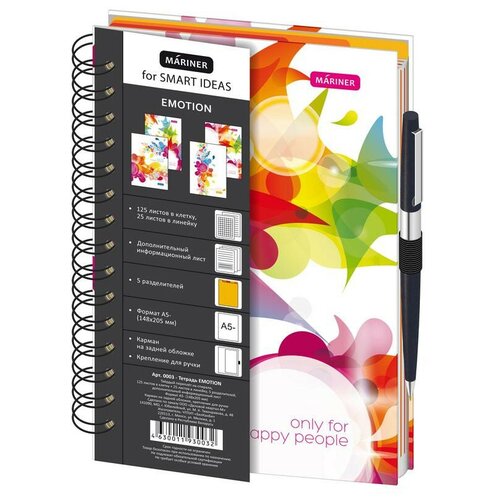 Бизнес-тетрадь Emotion,А5,150л.148х20. 5 раз, рез под руч, кл+лин,0003 Mariner 309118