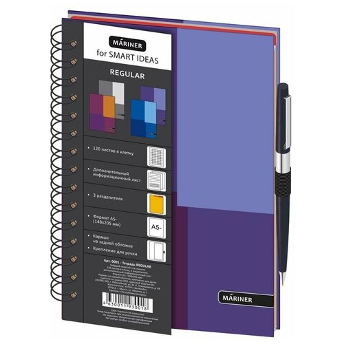 Бизнес-тетрадь Mariner Regular А5 120 листов фиолетовая в клетку на спирали 3 разделителя (148х205 мм)