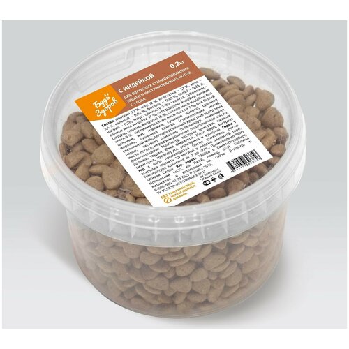 0,2 кг Будь Здоров Сухой корм для стерилизованных кошек, кастрированных котов, с индейкой, супер-премиум