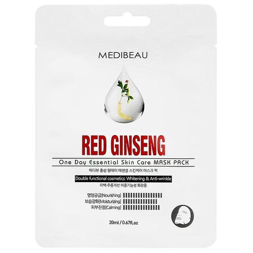 Маска для лица MEDIBEAU с экстрактом красного женьшеня (для сияния кожи) 20 мл