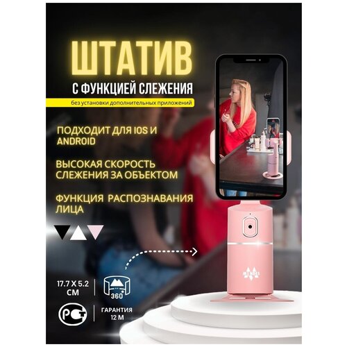 Штатив для телефона / Mendes / Умный штатив монопод для телефона с датчиком движения, 360 / 8 часов без прерывной работы /USB TYPE-C, Цвет Розовый
