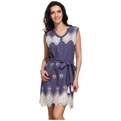 Mia-Mella Платье-туника Marsell с воротом на пуговицах, синий с белым, XS