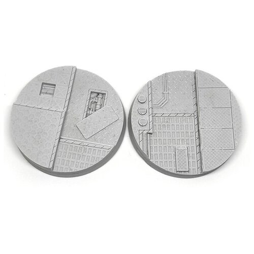 Набор круглых подставок для миниатюр (Вархаммер, Warhammer и пр.) Tech Bases / Техническая, 50 мм, непокрашенные, 2 шт.