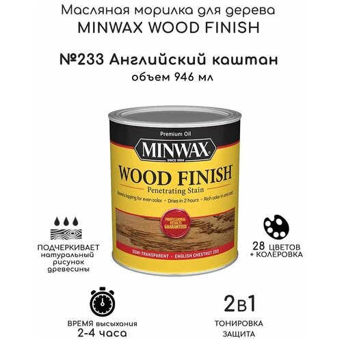 Масло для дерева и мебели Minwax Wood Finish. 233 Английский каштан, 946 мл. Тонирующая пропитка - морилка для дерева