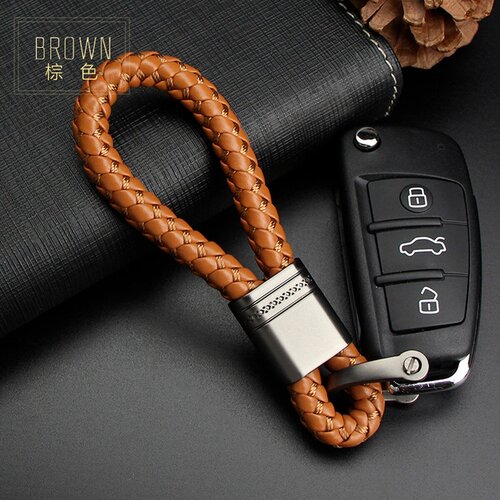 Брелок , натуральная кожа, нержавеющая сталь, коричневый