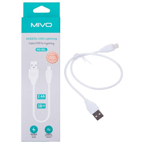 Кабель MIVO MX-03L USB-Lightning, 30 см, 5 В/ 2.4 А