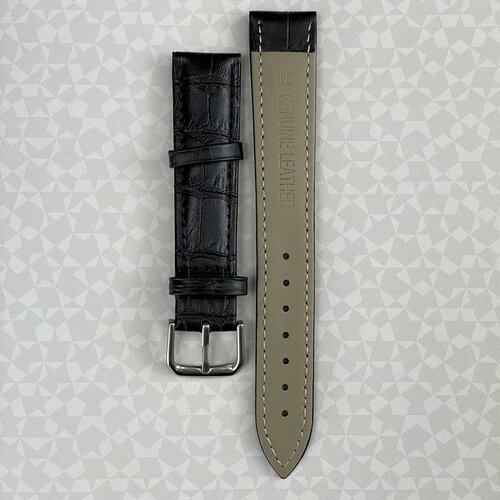Ремешок натуральная кожа, нержавеющая сталь, застежка пряжка, водонепроницаемый, размер 18, черный