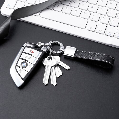 Брелок , натуральная кожа, нержавеющая сталь, черный