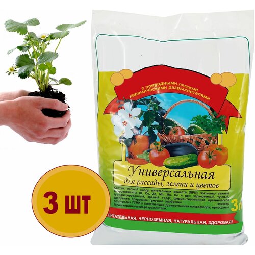 Почвогрунт для рассады, 3 шт по 3 л. Полностью готовый нейтральный почвогрунт для посадки и пересадки рассады, комнатных растений, цветов