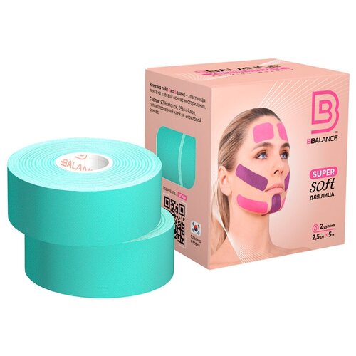 Набор тейпов для лица BB SUPER SOFT 2,5 см × 10 м хлопок цвет мята BBALANC (Южная Корея)