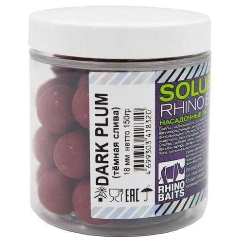 Бойлы RHINO BAITS растворимые насадочные Dark Plum (тёмная слива), 18мм, банка 0,15 кг