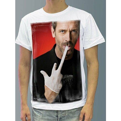 Футболка мужская белая из хлопка с DTF принтом Сериалы Доктор Хаус - 86