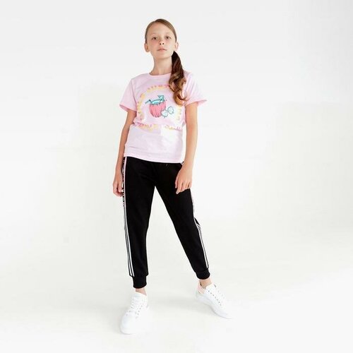Спортивные брюки для девочки, цвет чёрный, рост 122 см