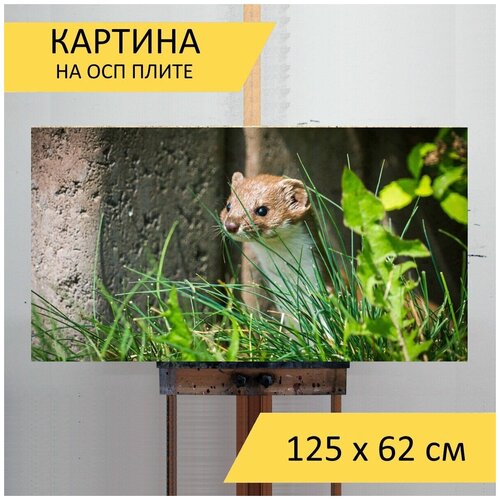 Картина на ОСП "Ласка, наименьшая ласка, mustela nivalis", 125 x 62 см