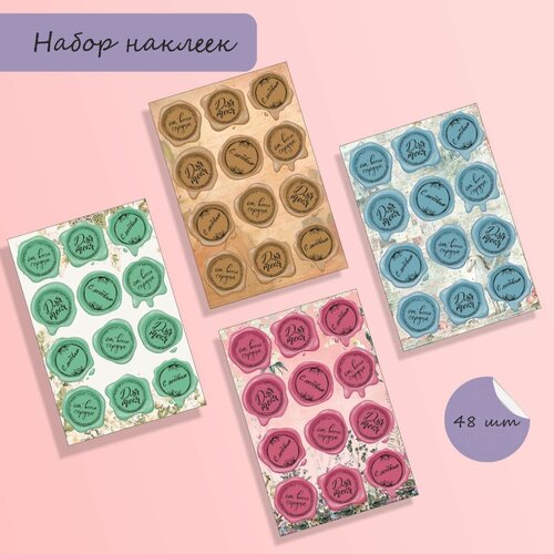 Круглые наклейки стикеры для цветов, рукоделия, подарков, пакетов, конвертов, открыток "С любовью, Для тебя"