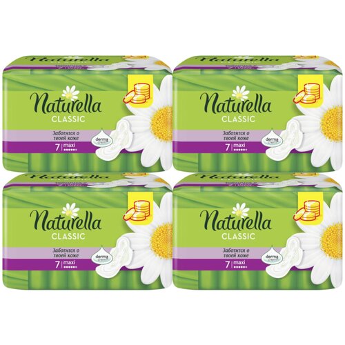 Прокладки женские Naturella Classic Maxi Ромашка, с крылышками, 7 шт, комплект: 4 упаковки