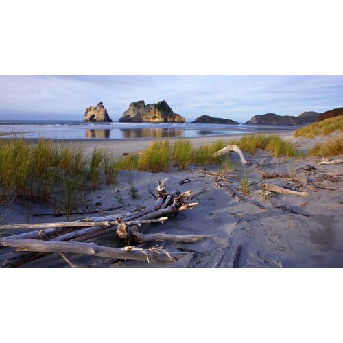 Картина на холсте 60x110 LinxOne "New Zealand Nelson beach Wharariki" интерьер для дома / декор на стену / дизайн
