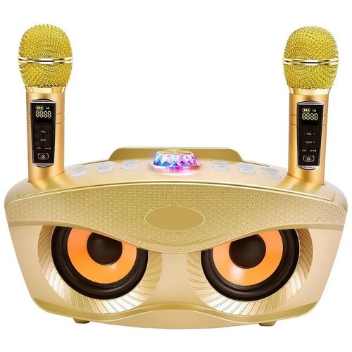 Беспроводной караоке для дома, портативная колонка с караоке, караоке система с 2 беспроводными микрофонами, эквалайзер, золотой