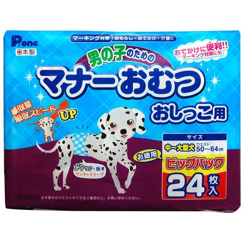 P.One Интеллектуальные подгузники для собак-кобелей средних пород 11-17 кг обхват талии 50-64 см, 24 шт.